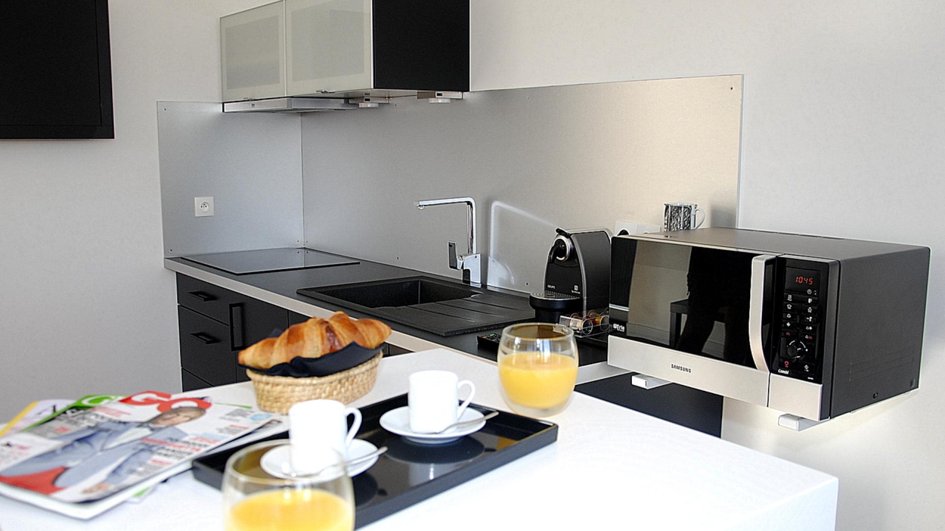 Well equipped kitchen with an induction hob, oven (micro wave and traditional), kettle, toaster and a Nespresso coffee machine.